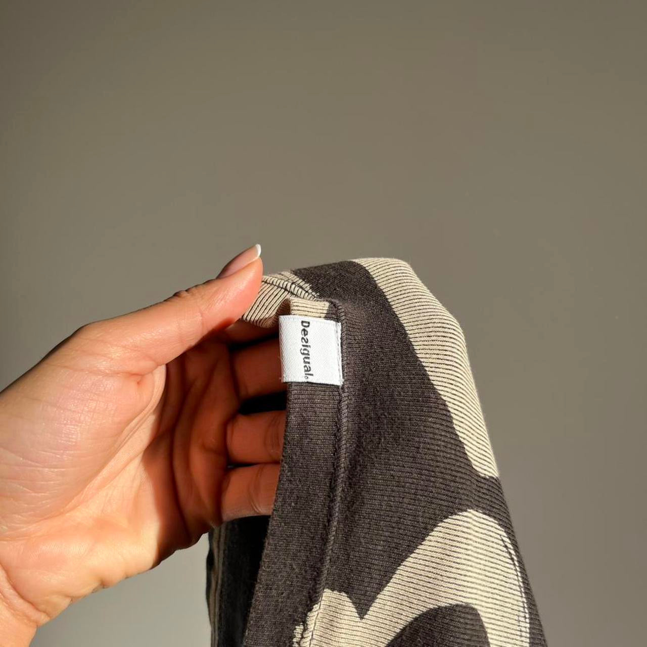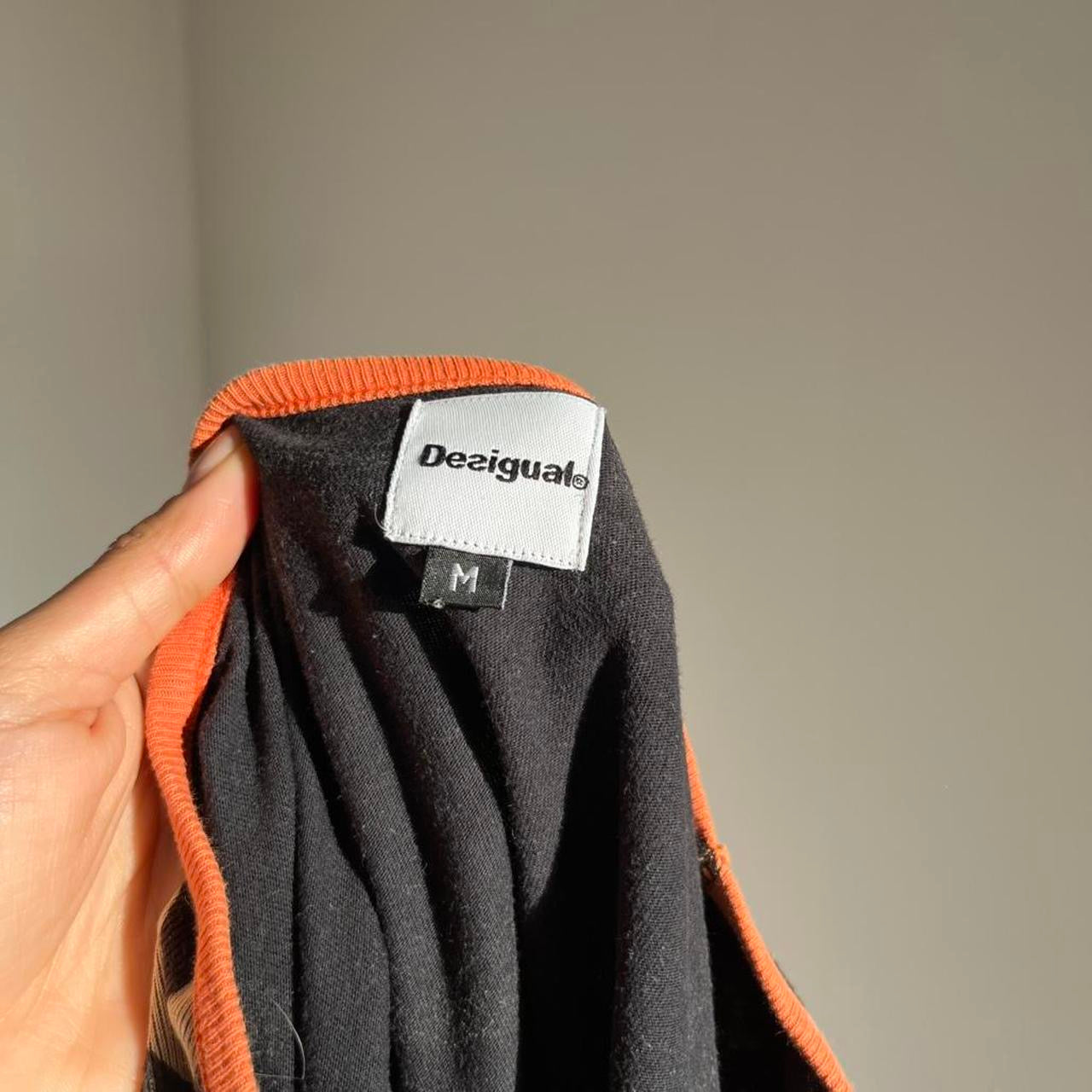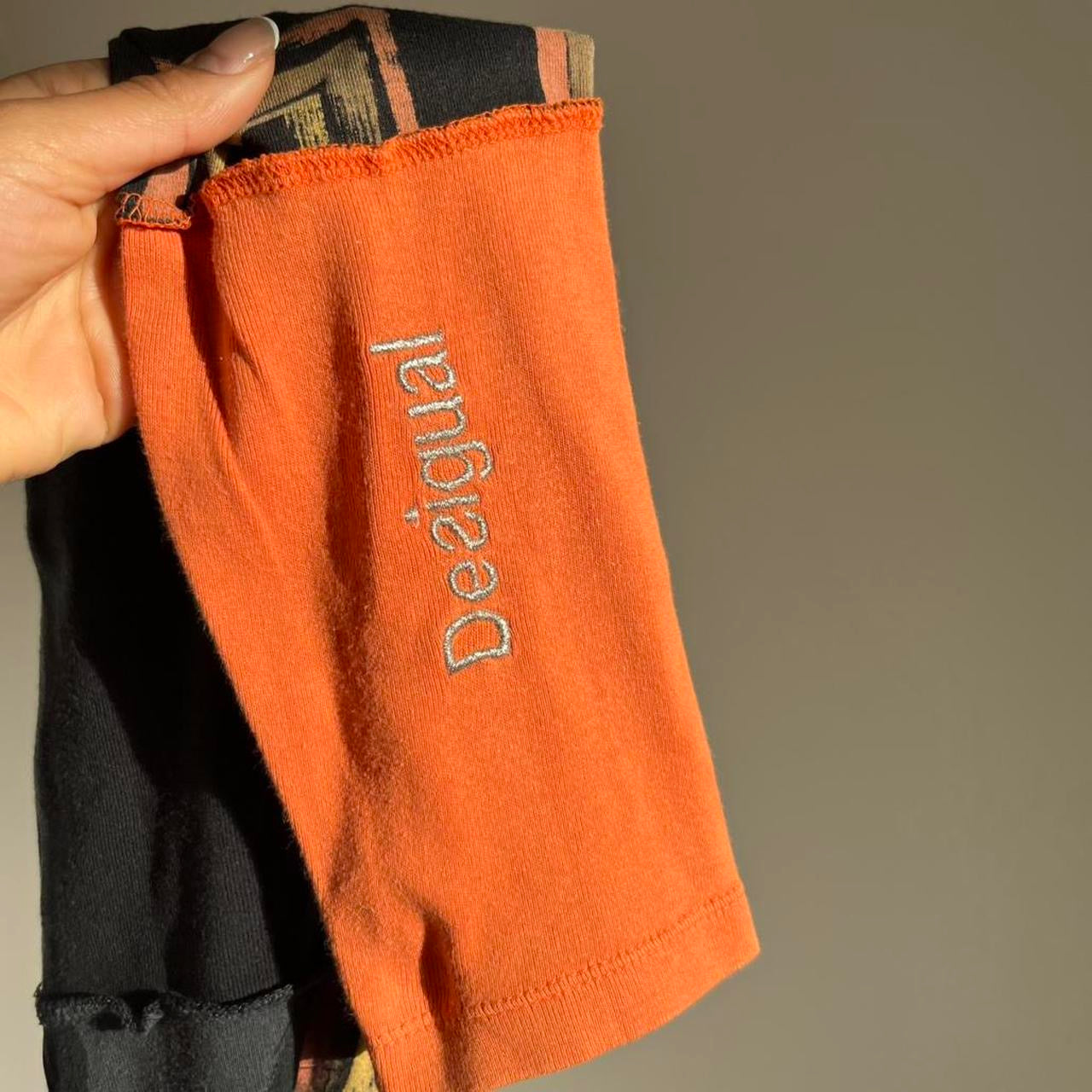 2000s Desigual long sleeve top with a unique print, featuring a mix of black, white, and orange hues. States size M best fits U.K. 8/10