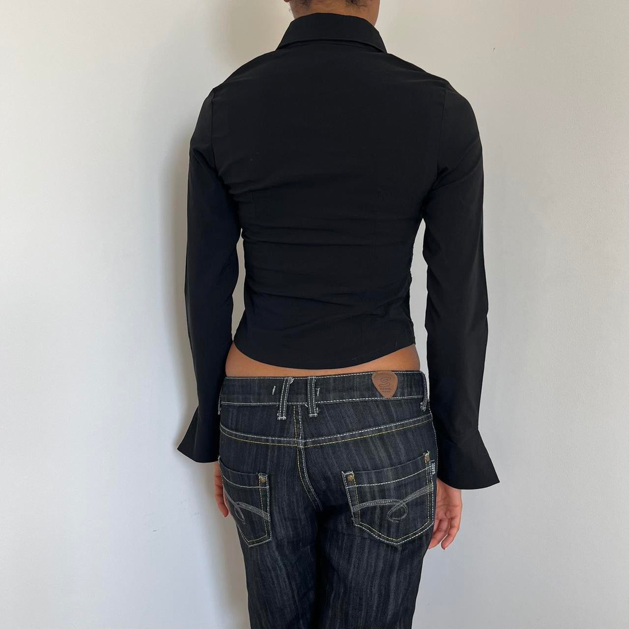 2000s Black long sleeve top with embroidered design. Deadstock with tags by B.B.L states size S fits true to size