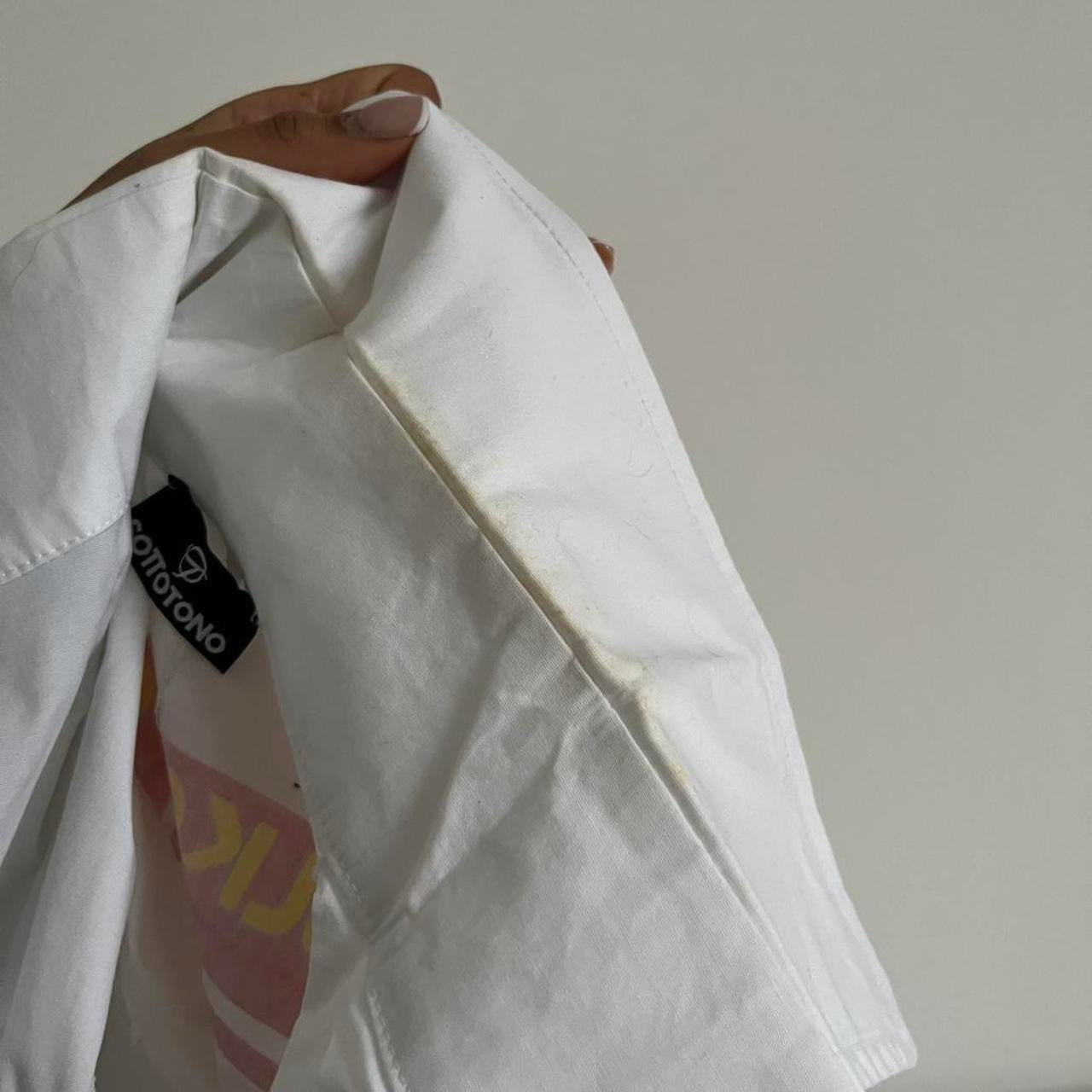 2000s deadstock White collared shirt. Some discolouration reflected in price. States size S best fits U.K. 6/8 XS