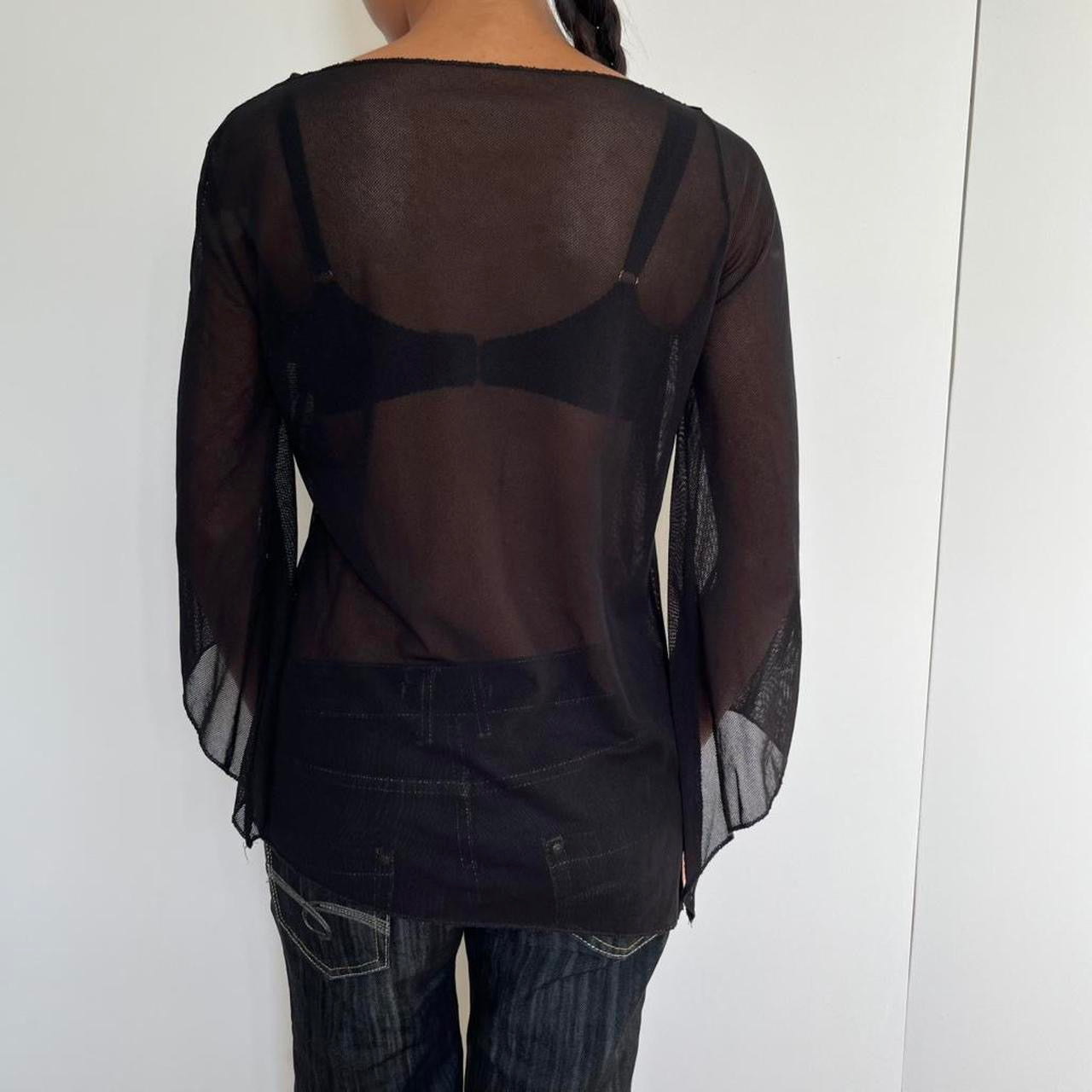 2000s Black sheer mesh long sleeve top with text detail. No sizing best fits S/M