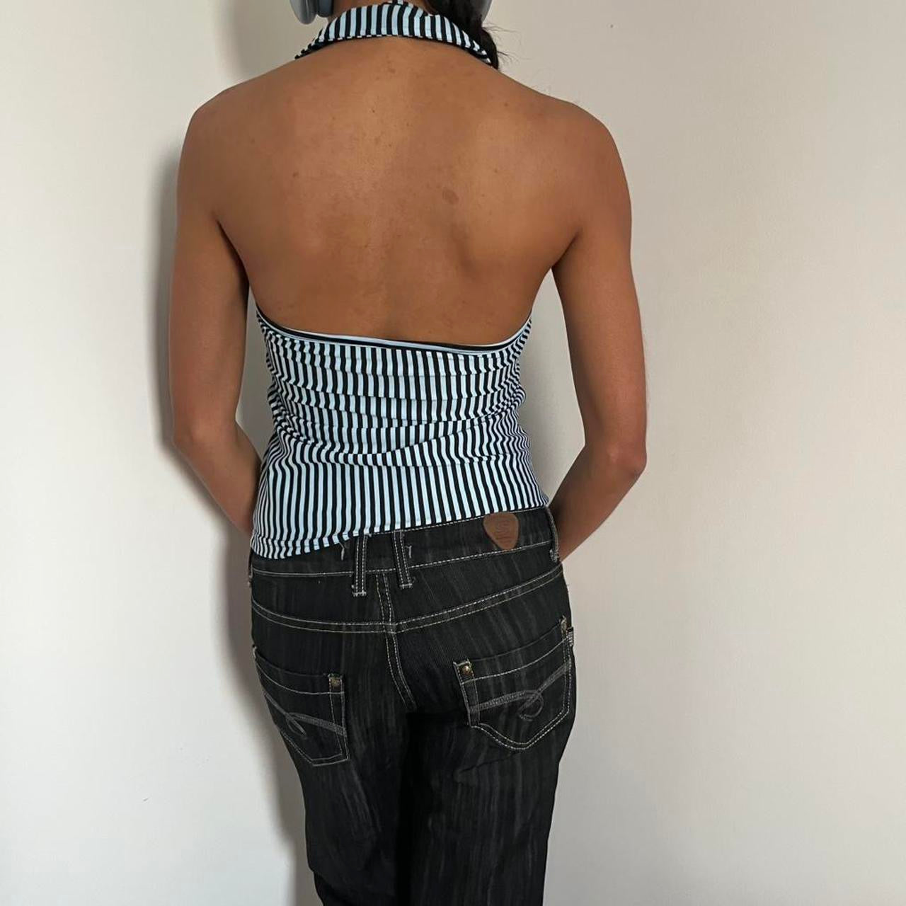 2000s Abercrombie Black and blue striped halter top with collar. States size 1 best first size S